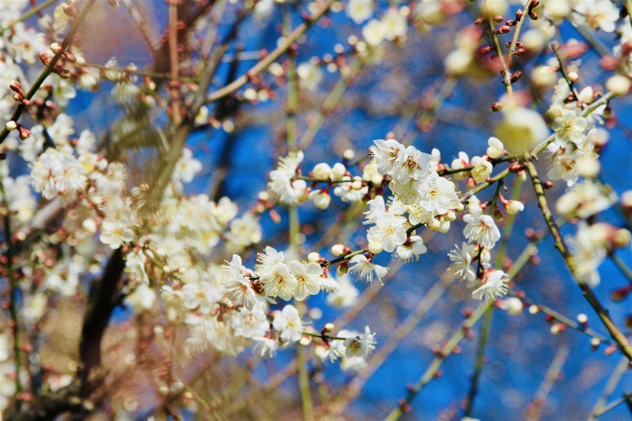 眼下,这座承载着荆楚梅文化的赏梅胜地正值盛景。三千余株蜡梅进入盛花期,金黄花瓣缀满枝头,清冽甜香萦绕全园,引得游人纷纷驻足品赏。雪梅、朱砂梅、绿萼梅等早花梅花品种也次第苏醒、逐步盛开,粉白浅红的花瓣点缀林间,与金黄蜡梅相映成趣,正式拉开东湖梅园冬日赏梅的唯美序幕。